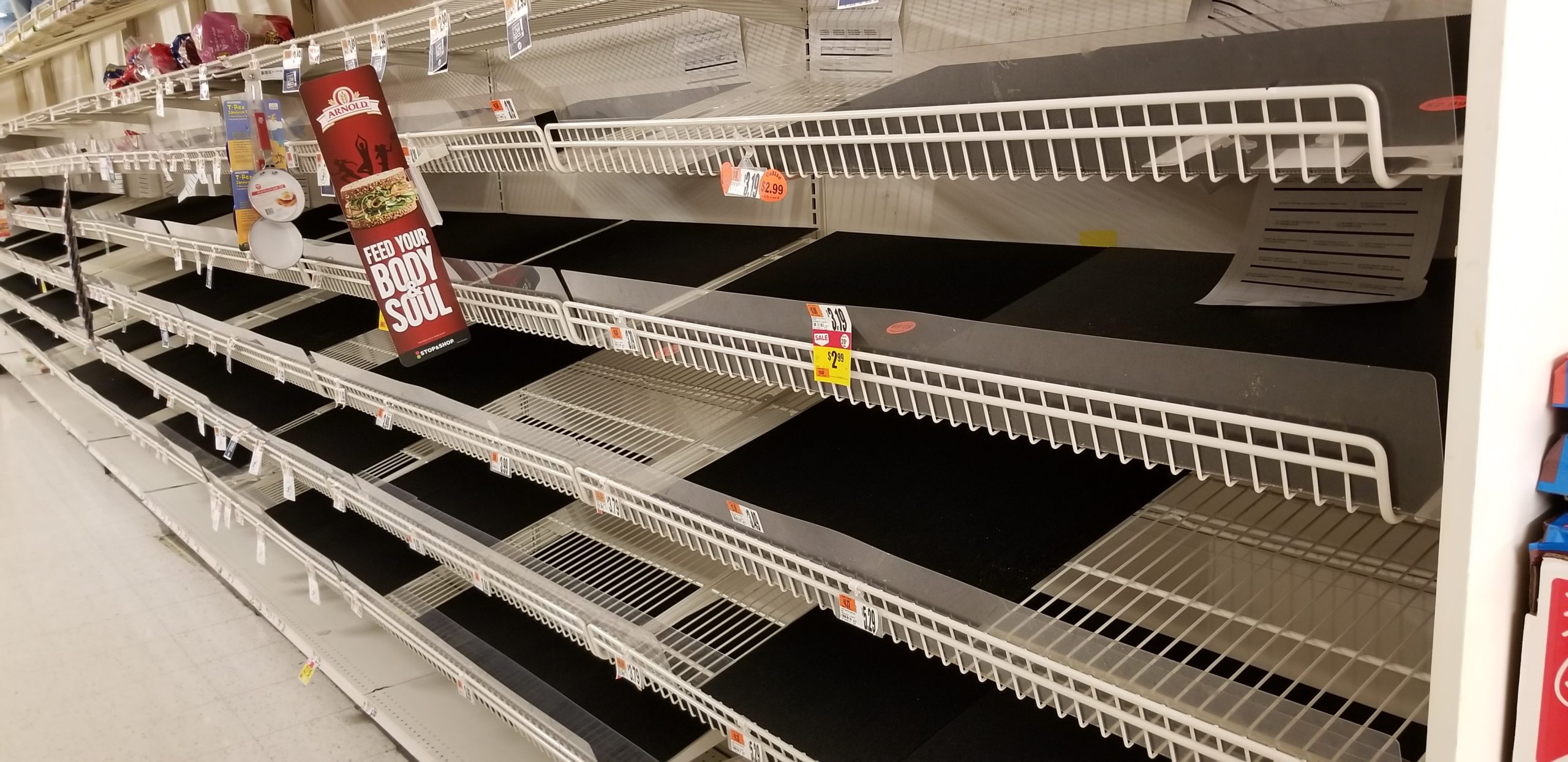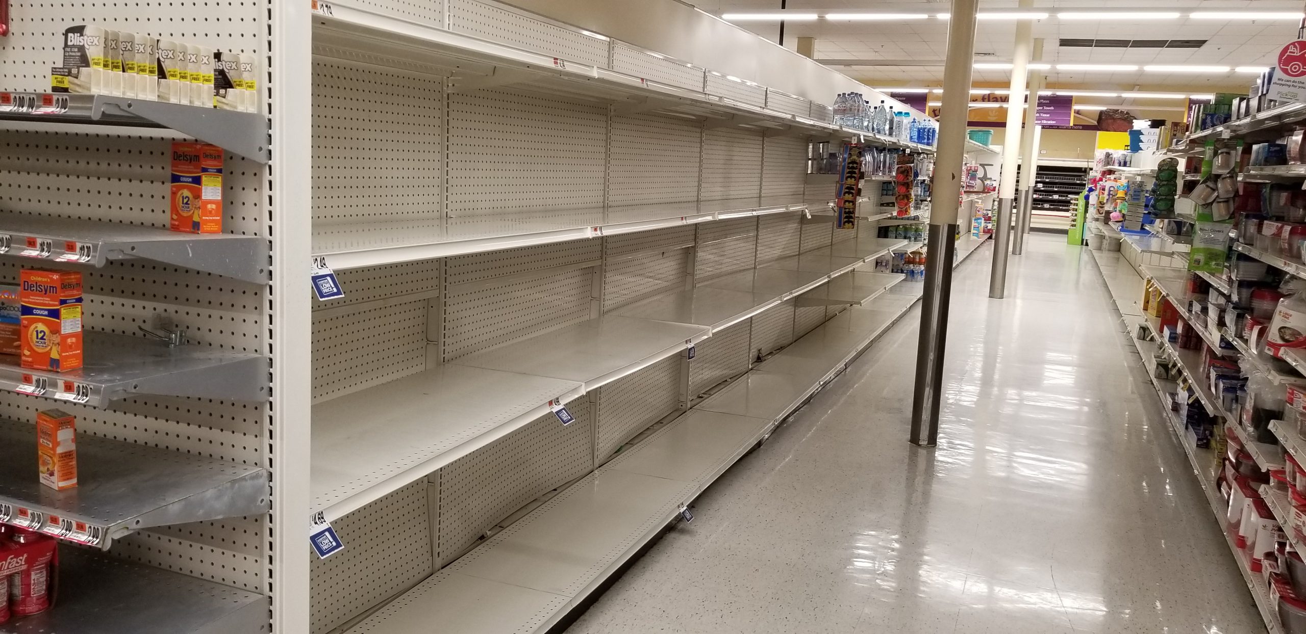 Tá faltando papel higiênico, água, carnes, ovos etc.