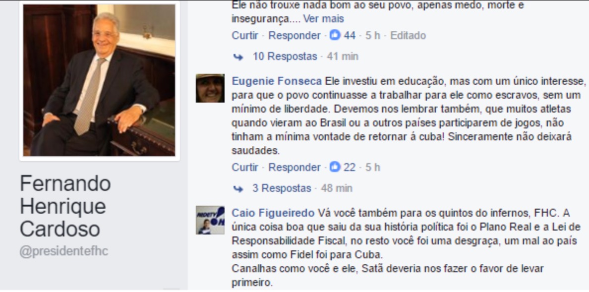 Fernando Henrique Cardoso caiu na besteira de fazer um post, no Facebook, manifestando algum pesar pela morte de Fidel Castro.