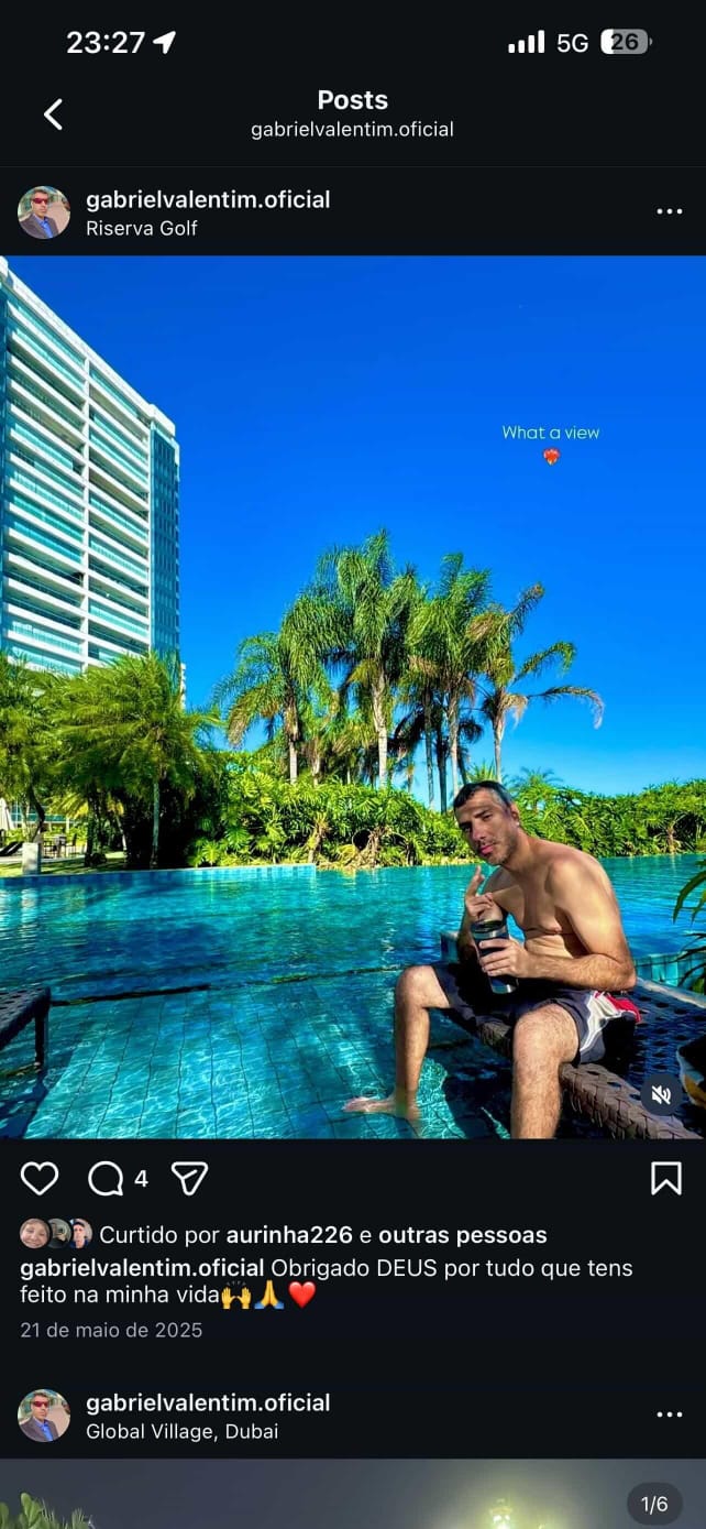 Segundo pessoas próximas da família, Gabriel nunca teve registros formais de trabalho, mas esbanja uma “vida de marajá” nas redes sociais. Gabriel morou em Dubai e, na cidade dos Emirados Árabes, aproveitou para ir a festas, fazer compras, além de frequentar hotéis e passeios turísticos em uma das cidades mais caras do mundo.