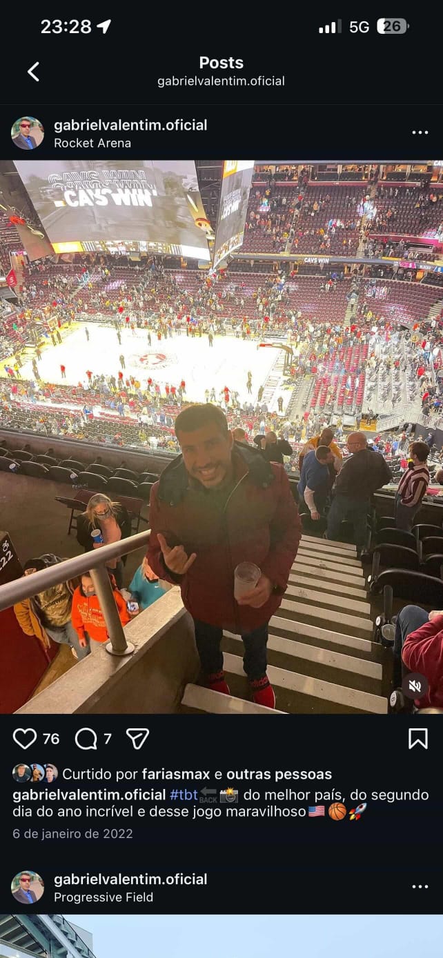 Em outras fotos e vídeos, Gabriel também aparece em passeios nos Estados Unidos, frequentando estádios de futebol e campos de golfe, além de viagens turísticas por Ohio e pela Califórnia.