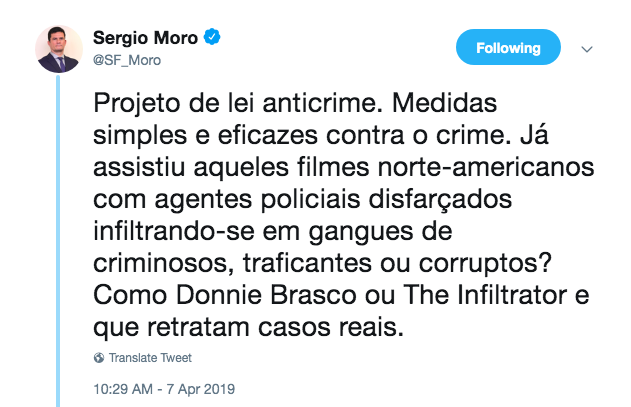 Em mais uma investida muito louca no Twitter, Sergio Moro escreveu sobre “medidas simples e eficazes contra o crime”.