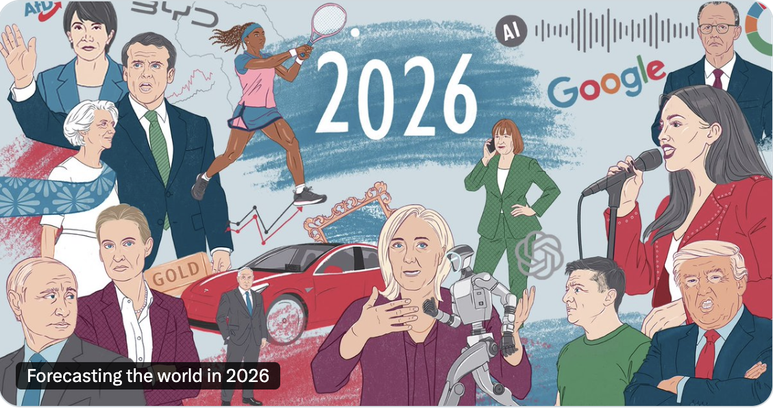 O Financial Times publicou seu tradicional especial anual Forecasting the World in 2026, que pode ser traduzido como “Previsões para o mundo em 2026”. A série reúne análises prospectivas sobre os principais movimentos políticos, econômicos e geopolíticos que devem moldar o ano seguinte, com base em dados, tendências estruturais e avaliação de riscos globais.