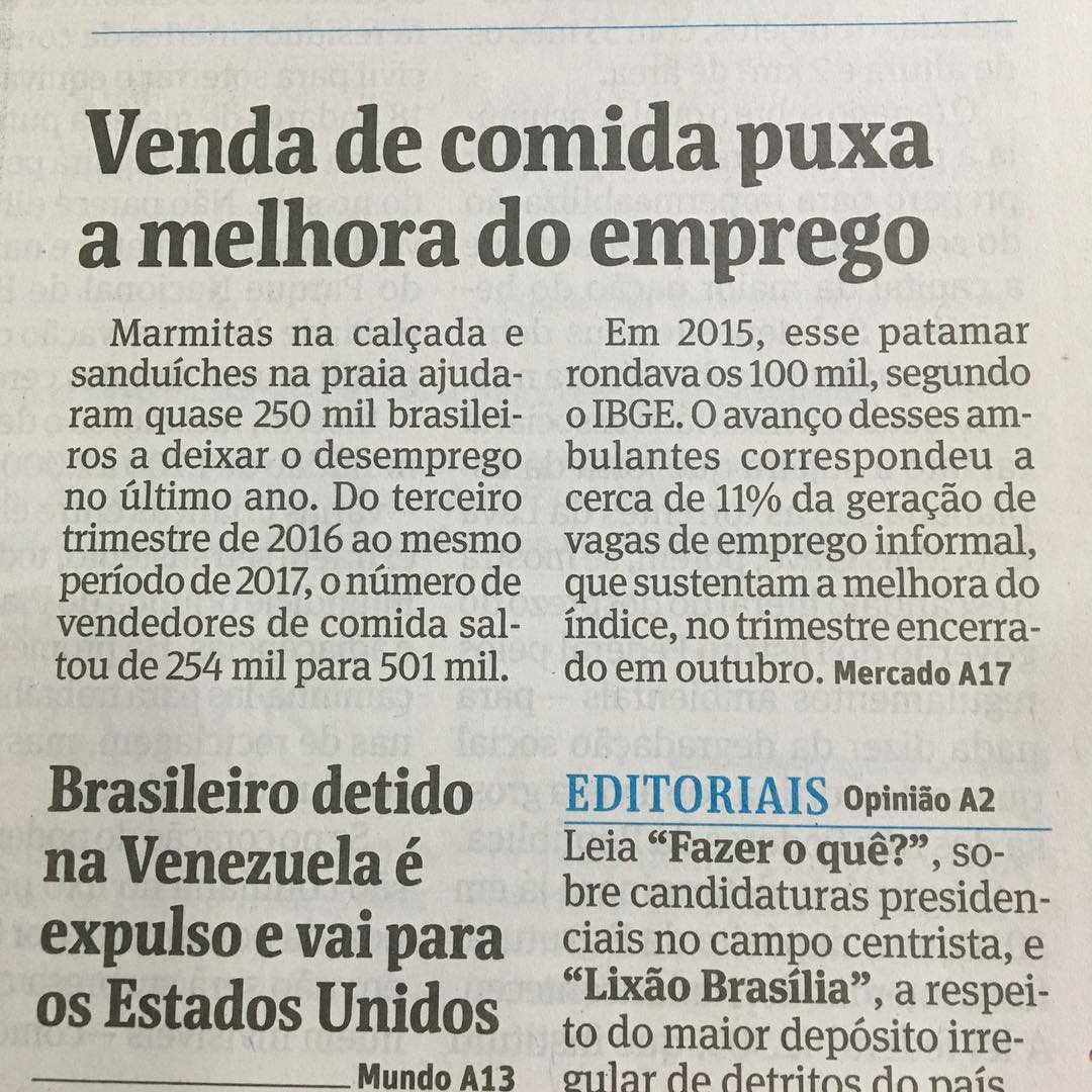 - O setor mais pujante da economia brasileira, “que está se recuperando”, garante a massa coxinha que não admite a merda que fez, é a venda de marmitas na rua e sanduíches na praia.