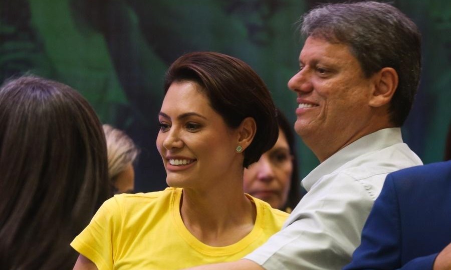 Michelle Bolsonaro e o governador de SP, Tarcísio. Foto: Divulgação