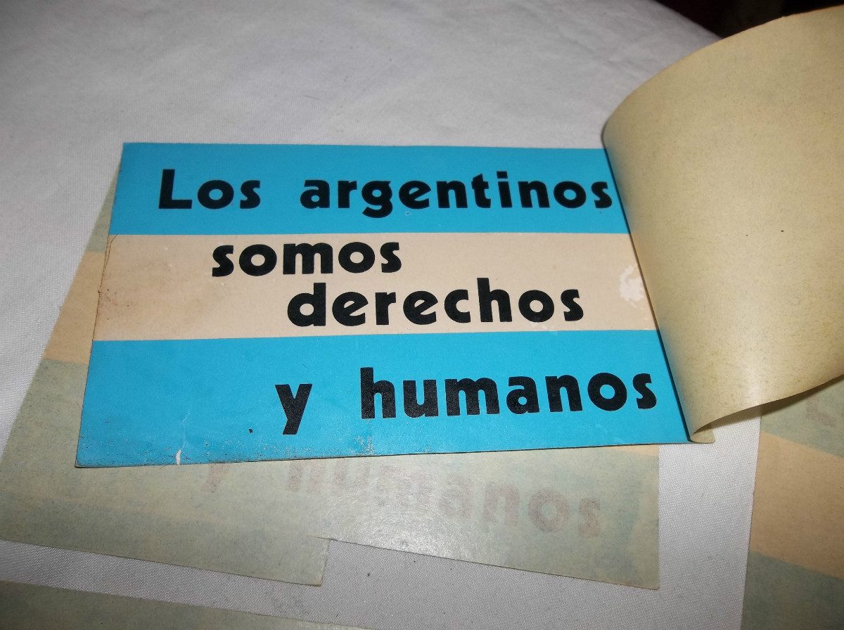 Na véspera de uma visita ao país da Comissão Interamericana de Direitos Humanos (CIDH) da OEA, o ministro do Interior, general Albano Harguindeguy, ordenou a compra de 250 mil adesivos em dois tamanhos, com o slogan “Os argentinos são direitos e humanos”.