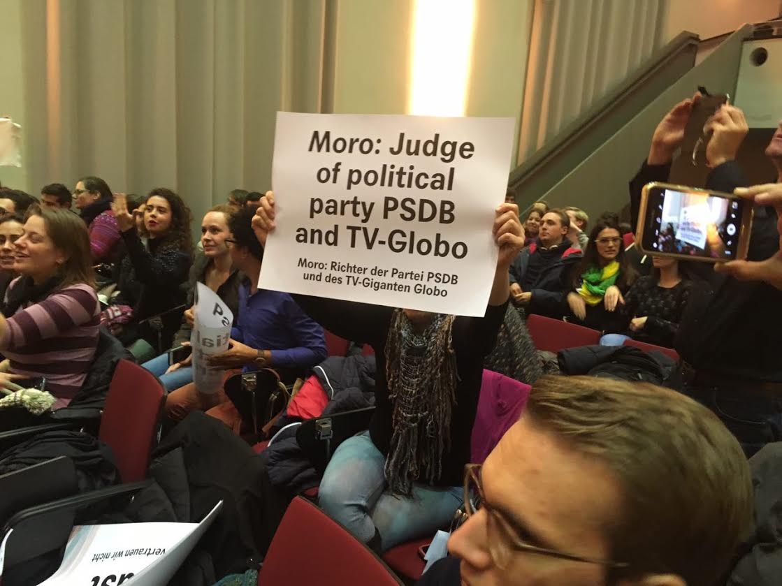 Numa palestra em Heidelberg, na Alemanha, um repórter da Deustche Welle Brasil lhe questionou sobre a foto. Moro se saiu com uma explicação meia boca.