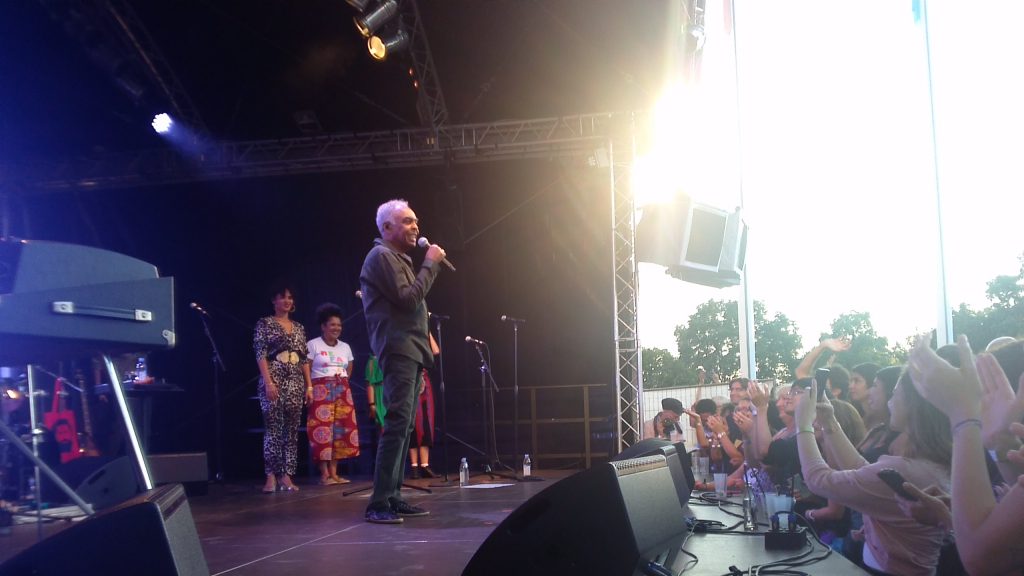 Ao contrário de Mílton, em seu show dias antes (05/07), que foi levado ao palco por um assistente e ficou o tempo todo sentado, mostrando saúde muito debilitada, Gil subiu ao palco em Berlim como se estivesse em sua sala de estar e fosse receber convidados esbanjando uma naturalidade impressionante.