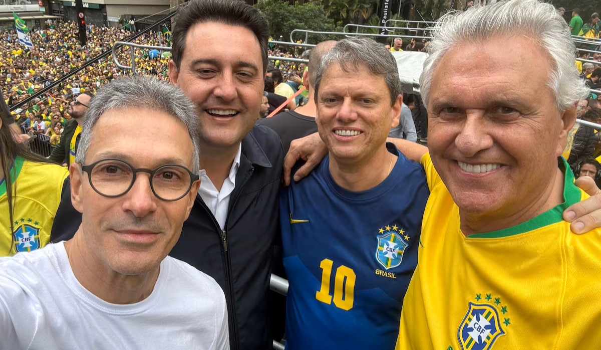 Romeu Zema, Ratinho Júnior, Tarcísio de Freitas e Ronaldo Caiado durante manifestação bolsonarista. Foto: Reprodução