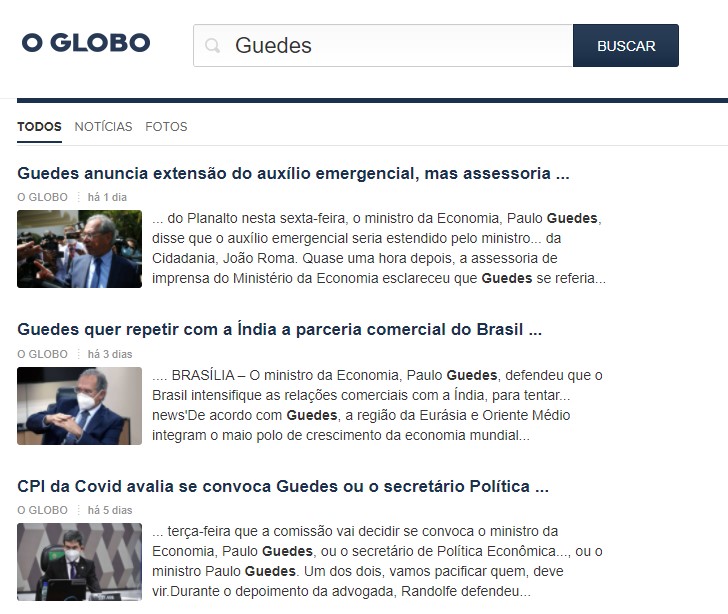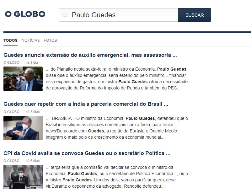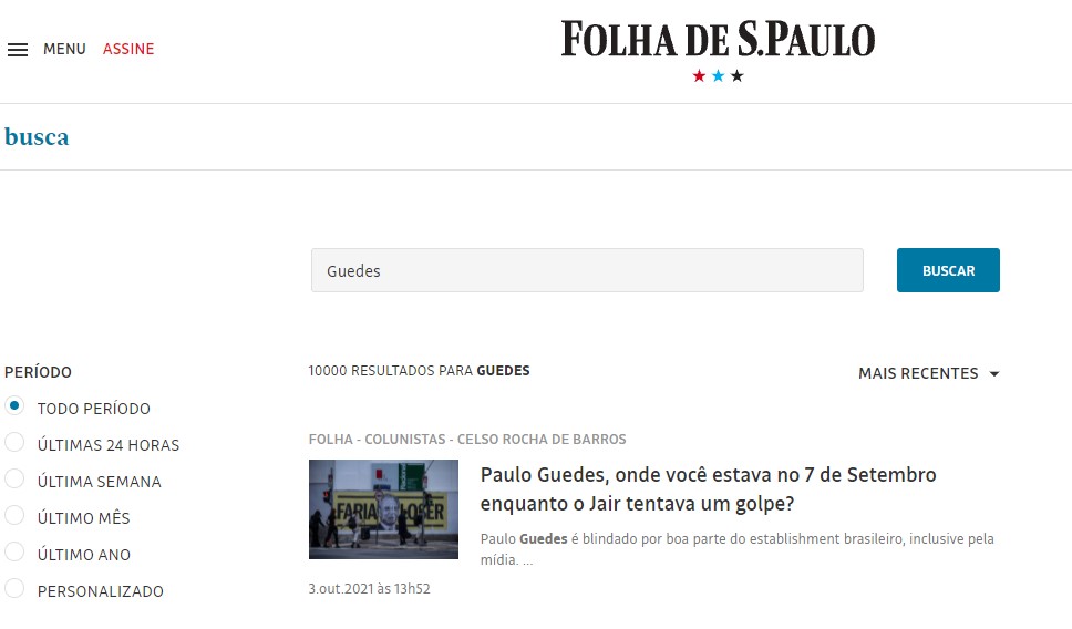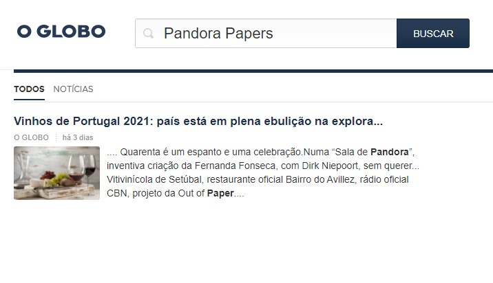 Ao pesquisar no site do jornal pelos termos ‘Guedes’, ‘Paulo Guedes’, ‘Ministro da Economia’ e ‘Pandora Papers’ não foram localizadas reportagens.