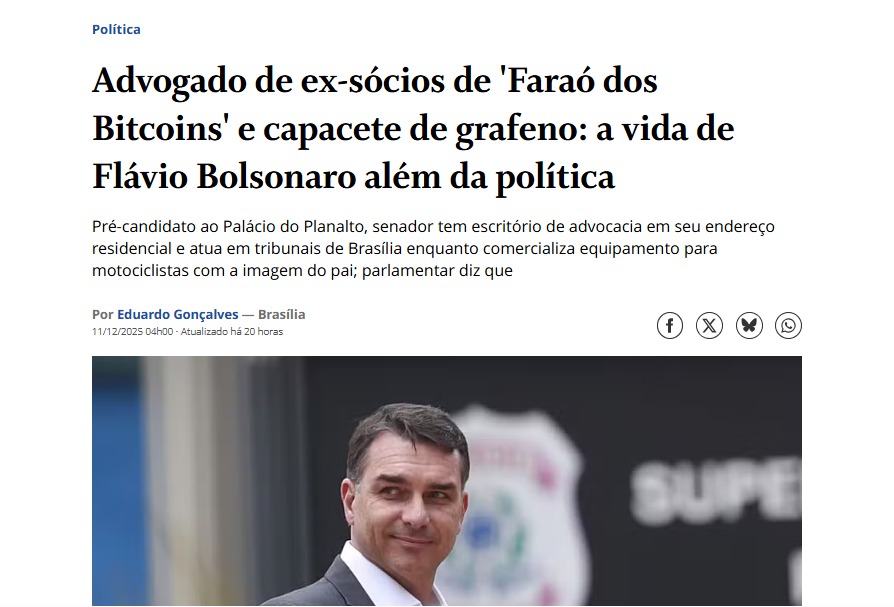 “Defesa de ex-sócios do ‘Faraó dos Bitcoins’ e mais: a vida de Flávio Bolsonaro de olho em 2026”