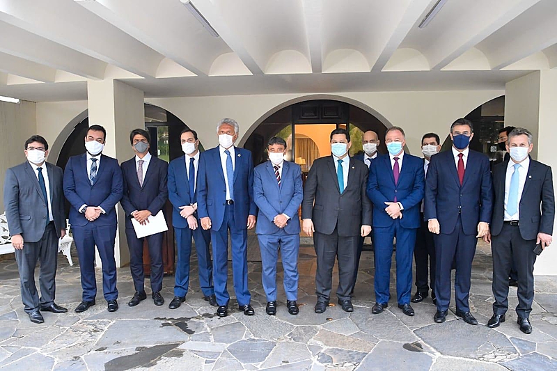 Na sequência, eles foram recebidos também pelo presidente do Senado, Davi Alcolumbre (DEM-AP), após uma solicitação do coordenador do Fórum de Governadores do Brasil e governador do Piauí, Wellington Dias (PT).