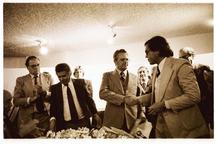 Papai recebe de seu antecessor Davi de Morais o cargo de presidente do Sindicato dos Jornalistas, em 1980