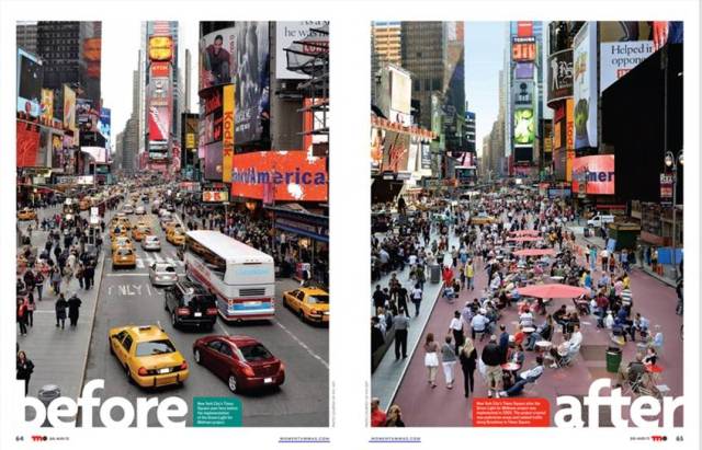 A ONG de Caroline está envolvida no esforço de Nova York para multiplicar as bicicletas. No encontro em São Paulo, ela falou na reconquista, para pedestres e ciclistas, do “espaço público” que foi sendo progressivamente ocupado pelos automóveis . “Promovemos atos simbólicos de ocupação desse espaço na Times Square”, diz ela. “A população começa a perceber claramente o espaço ocupado pelos automóveis.”