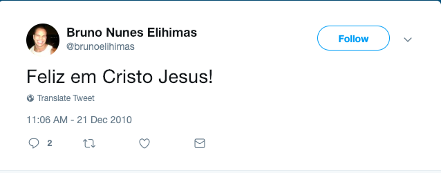 Nas redes sociais, Bruno fez campanha para Bolsonaro e aparece sendo batizado por um pastor evangélico numa praia.