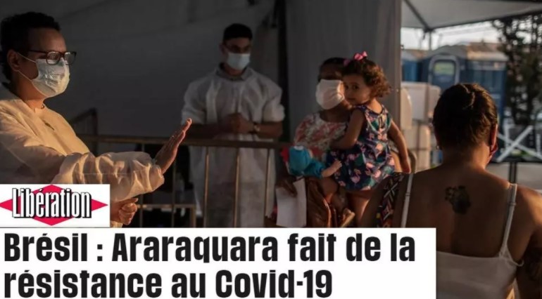 O jornal Libération desta segunda-feira (28) traz uma matéria sobre a luta contra a Covid-19 em Araraquara, no interior de São Paulo. A prefeitura da cidade, administrada pelo Partido dos Trabalhadores, colocou em prática uma estratégia considerada exemplar para frear a propagação da doença, “à revelia da política de Bolsonaro”. O resultado é uma mortalidade por coronavírus três vezes mais baixa do que a média nacional.