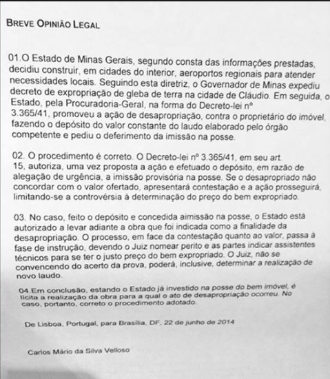 O parecer de Velloso sobre o aeroporto que Aécio fez nas terras do tio