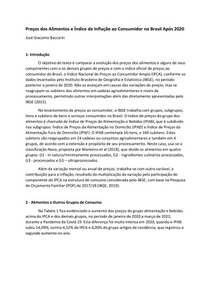 Estudo de grupo de trabalho coordenado pelo Prof. José Giacomo Baccarin, da UNESP e membro do Instituto Fome Zero, mostra que a inflação oficial do período entre janeiro de 2020 e março de 2022, durante a Pandemia da Covid-19, afetou mais intensamente as famílias de baixa renda, aumentando a insegurança alimentar entre os mais pobres. O estudo se baseia no IPCA (Índice de Preços ao Consumidor Amplo), considerado índice oficial da inflação pelo governo federal.