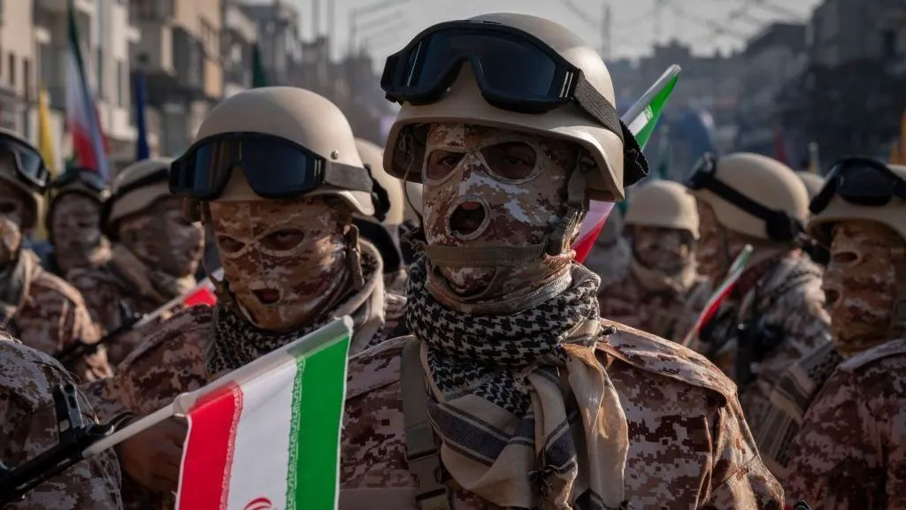 Integrantes armados da Guarda Revolucionária Islâmica do Irã. Foto: Morteza Nikoubazl/NurPhoto via Getty Images
