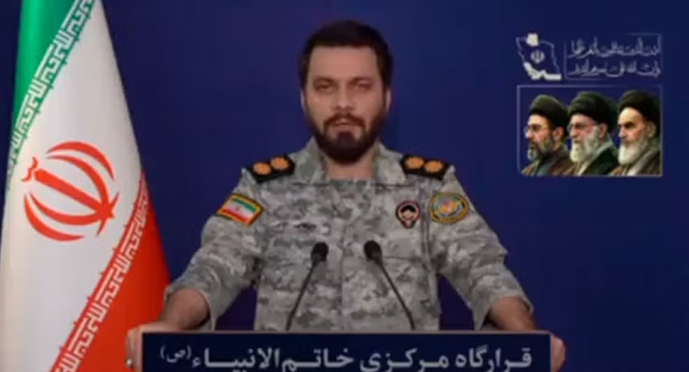 O porta-voz do comando militar iraniano, em pronunciamento dado a TV estatal. Fonte: Reprodução