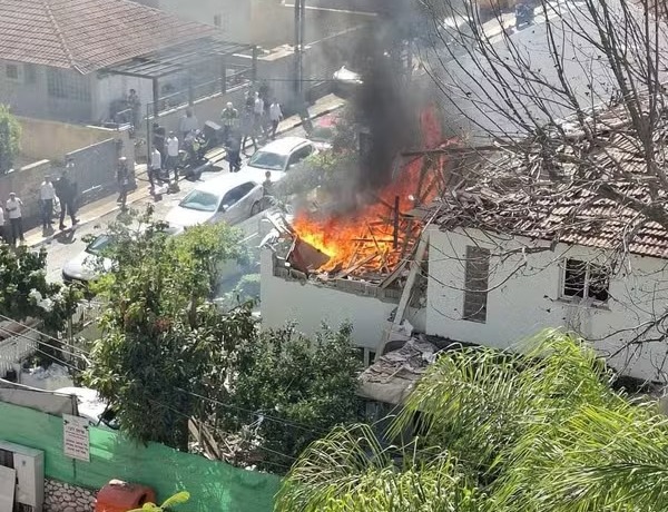 Imagens registradas por moradores mostram uma casa em chamas após o impacto. Segundo autoridades locais, outros pontos também foram danificados e equipes antibombas foram enviadas para verificar a presença de explosivos.