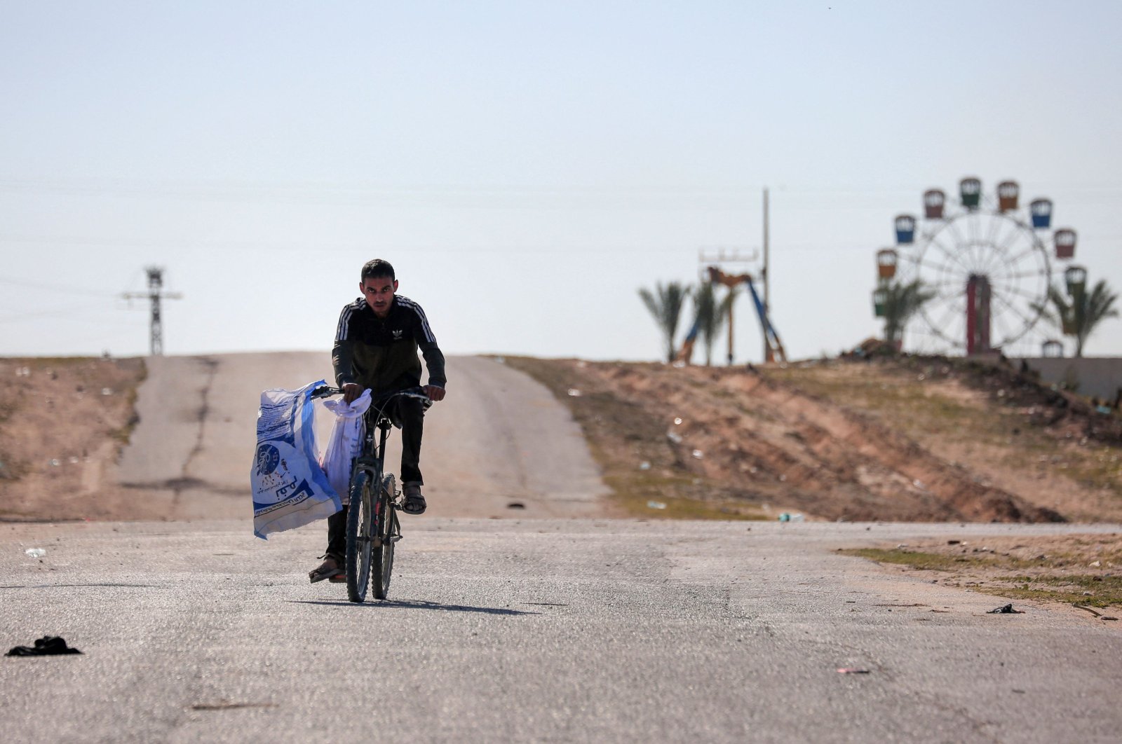 Os dois estavam em uma rua no bairro de Al-Zaytun. Após uma análise adicional das imagens, ficou claro que o indivíduo estava empurrando uma bicicleta cuja roda dianteira e guidão são claramente visíveis.