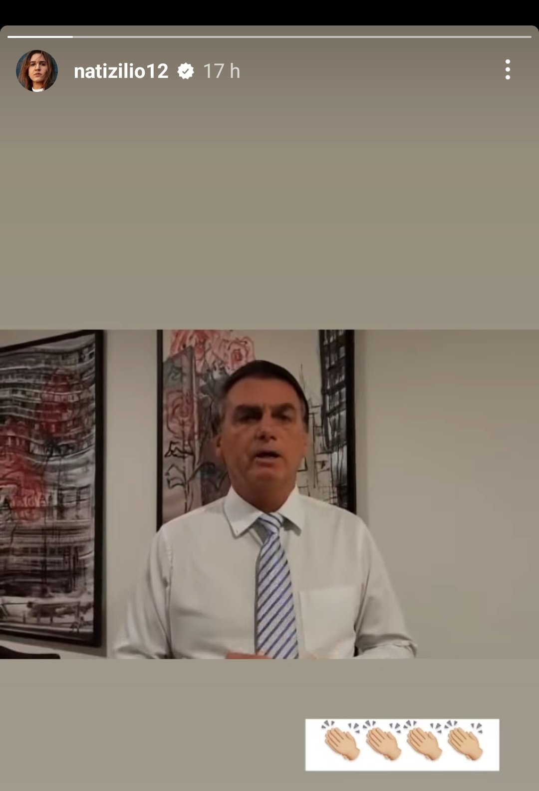 A ponteira da seleção brasileira de vôlei, Natalia Zilio, que disputou as Olimpíadas no ano passado, compartilhou em suas redes sociais um vídeo de Jair Bolsonaro.