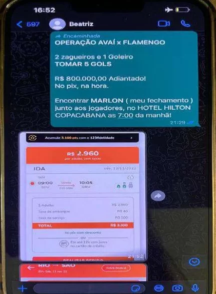 A própria mensagem, que inclui as coordenadas para a “missão” a ser cumprida por Romarinho no Rio e menciona uma recompensa de R$ 800 mil adiantados “no pix”, se refere à trama como “Operação Avaí x Flamengo”.