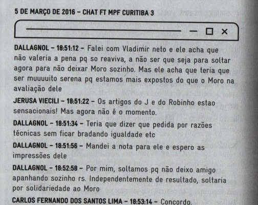 Dallagnol lhe disse que “ficou boa parte do começo, mas com base em seu olhar tiramos 2 itens inteiros”.