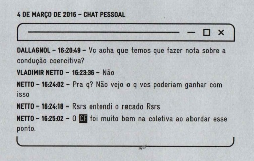 “Fico feliz em ajudar”, respondeu o outro. “Já soltaram a nota? Ainda dá tempo de sair no JN”.