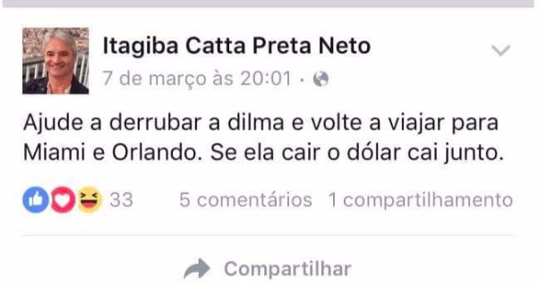 Nas redes, xingava Dilma com aquele repertório clássico da extrema-direita.