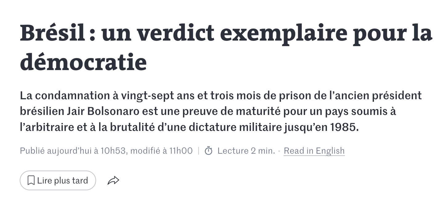 Segundo o Le Monde, a decisão é exemplar, independentemente das tentativas dos apoiadores de Bolsonaro de aprovar uma lei de anistia.