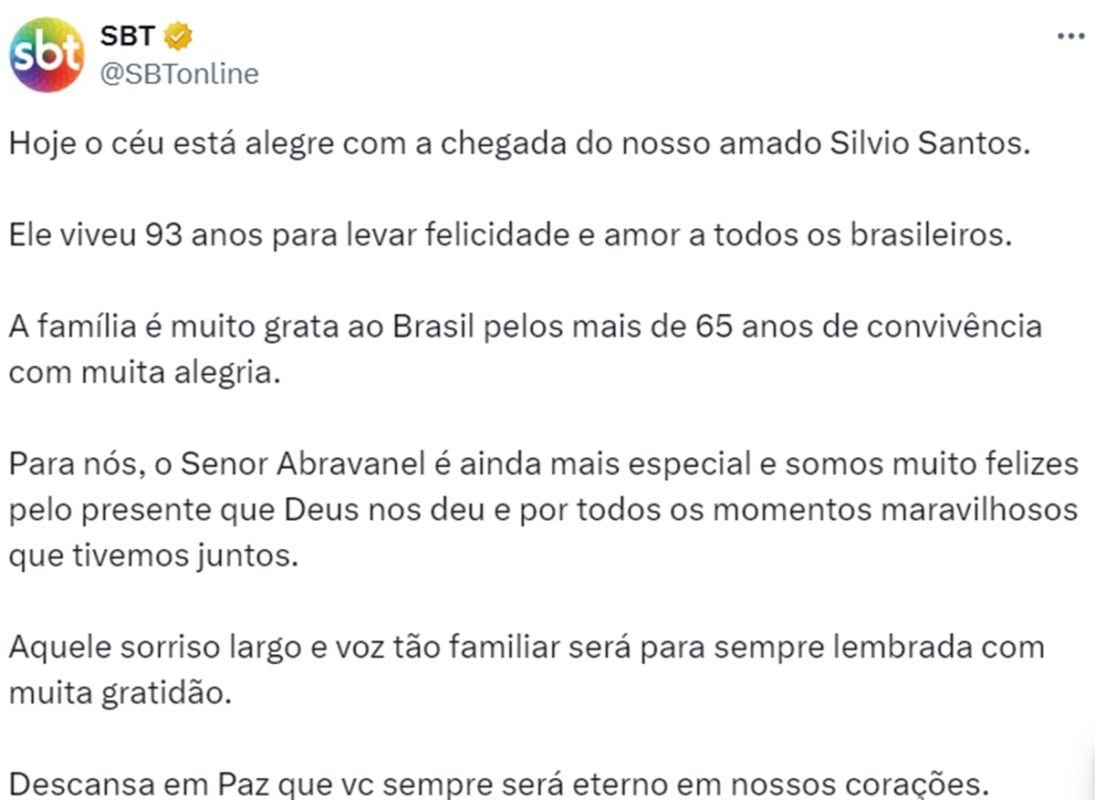 Silvio Santos morreu aos 93 anos, na madrugada deste sábado (17/8), após ser internado no Hospital Albert Einstein, em São Paulo.
