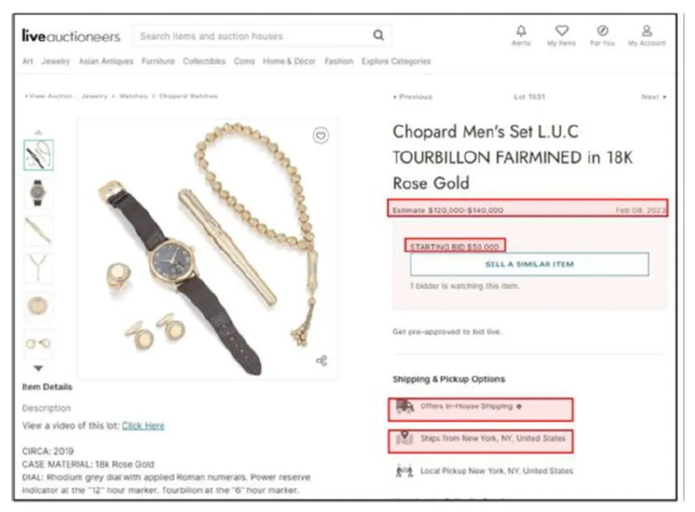 Neste ano, Cid e outros auxiliares do ex-presidente tentarem vender o conjunto Chopard. A PF encontrou o artigo em um site de leilões, com a estimativa de arrecadação entre US$ 120 mil e US$ 140 mil. Foi possível identificar que era o mesmo kit através do número de série do relógio.