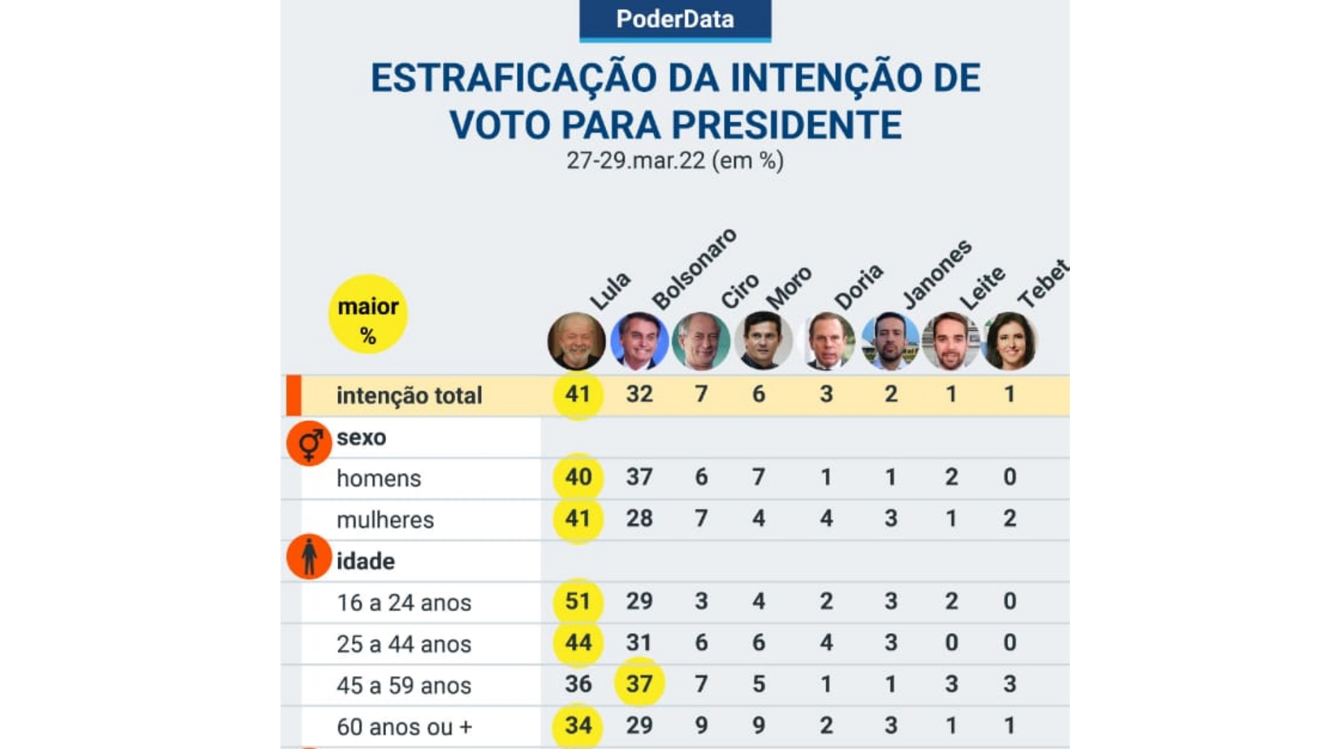 O PoderData realizou 3.000 entrevistas, em 275 municípios das 27 unidades da Federação, entre os dias 27 e 29 de março. A margem de erro é de dois pontos porcentuais, para mais ou para menos.
