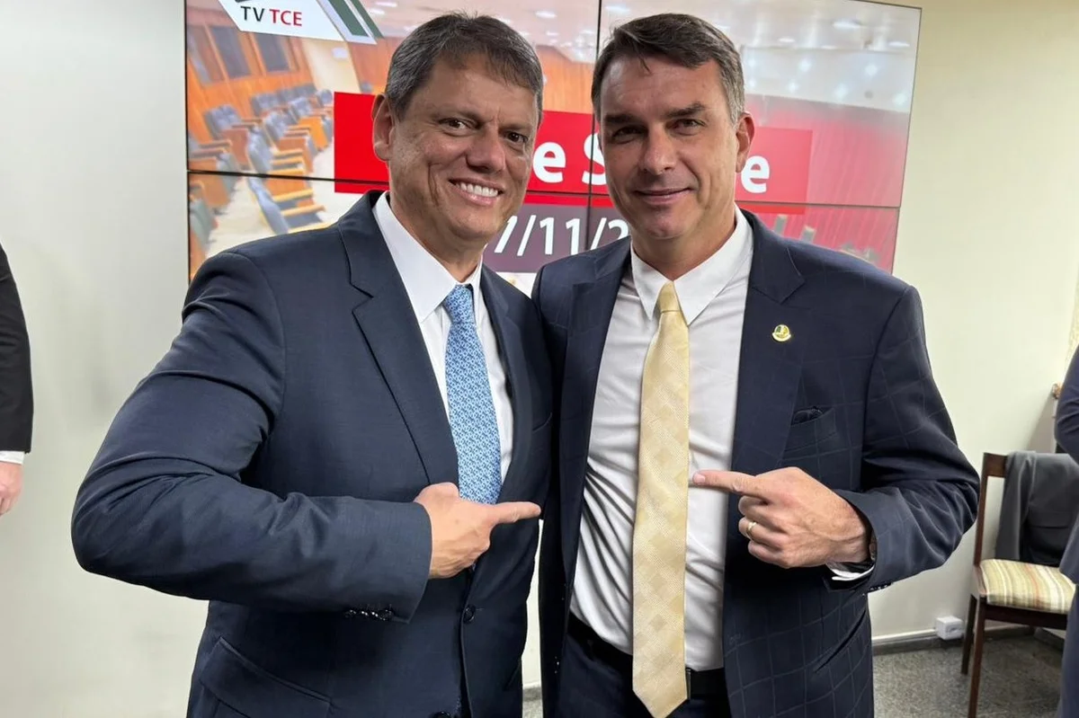 Tarcísio de Freitas e Flávio Bolsonaro. Foto: reprodução