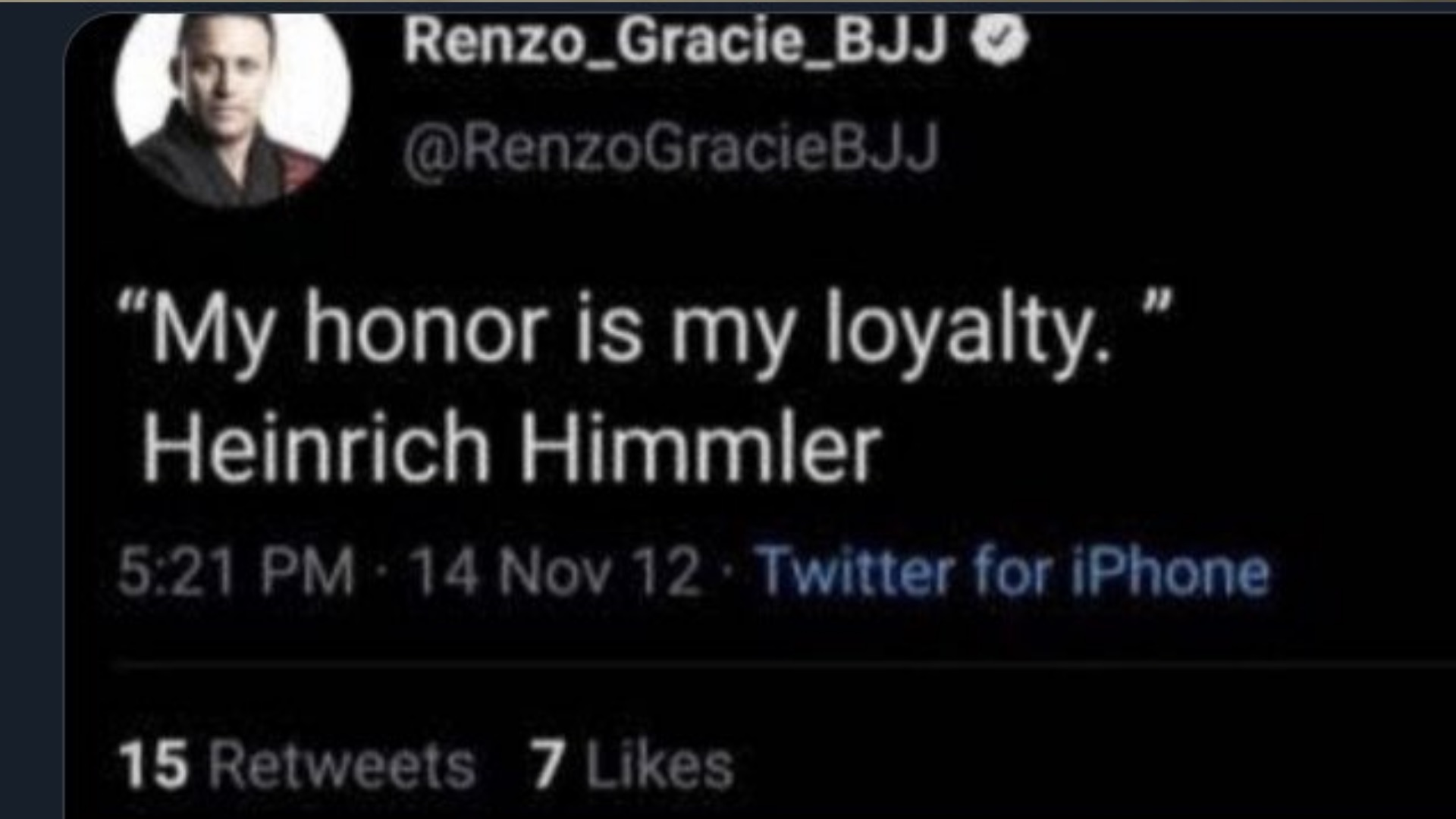 Após a ameaça, usuários resgataram uma postagem de 2012 em que Gracie citava uma frase de Heinrich Himmler, chefe das forças nazistas da SS e um dos responsáveis pelo Holocausto. “Minha honra é minha lealdade”, dizia a publicação.
