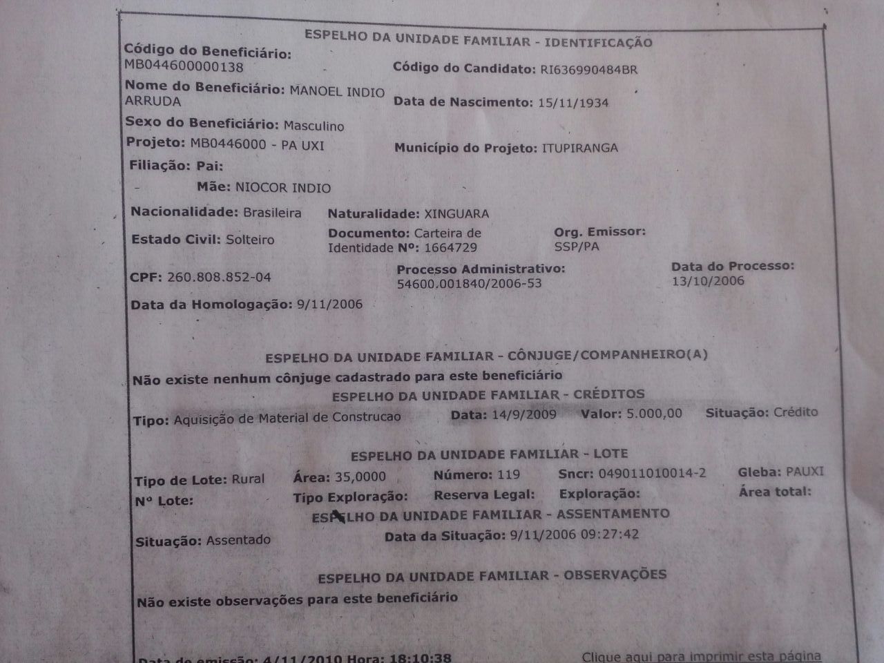 De acordo com a CPT de Marabá, há anos Manoel vinha procurando o Instituto Nacional de Colonização e Reforma Agrária (Incra) e outros órgãos governamentais requerendo providência sobre reconcentração de lotes no assentamento Uxi e outros problemas com limites de terras.
