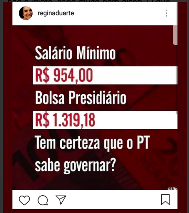 Matriarca dos bolsominions, Regina Duarte espalha fake news da “bolsa presidiário do PT”. Por Kiko Nogueira