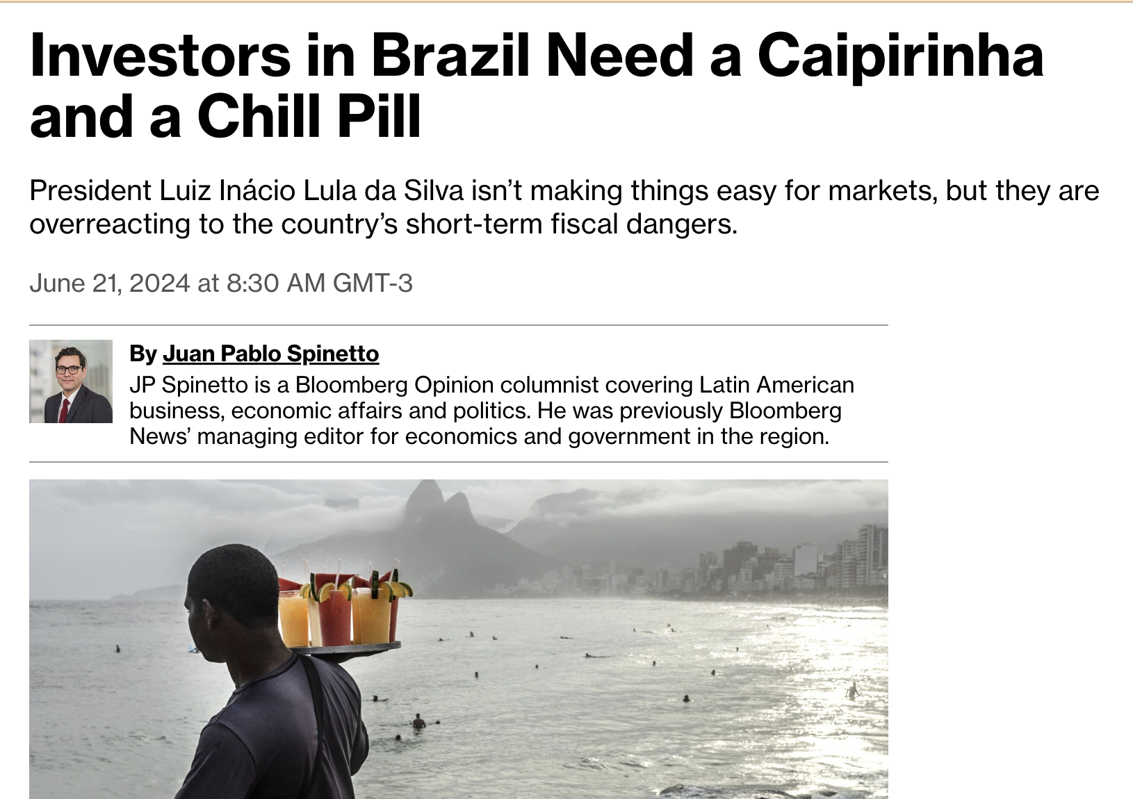 “O mercado precisa de uma caipirinha e um calmante”, diz o título do artigo do colunista Juan Pablo Spinetto, editor do site para a América Latina.