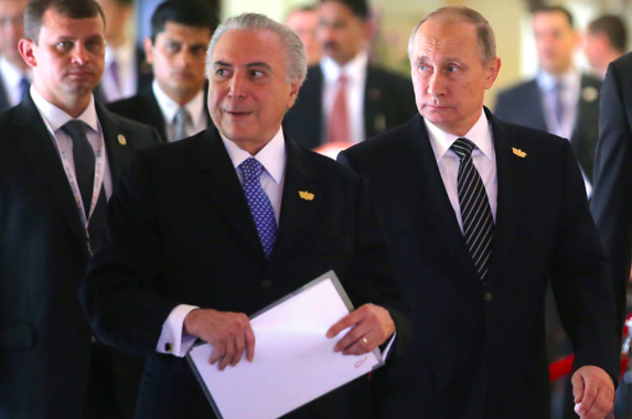 O Estadão deu a matéria. Temer foi esnobado por Putin na cúpula dos BRICS em Goa, na Índia, no final de semana. O russo esteve com o líder da China, Xi Jinping, o primeiro-ministro da Índia, Narendra Modi, e com Jacob Zuma, presidente da África do Sul.