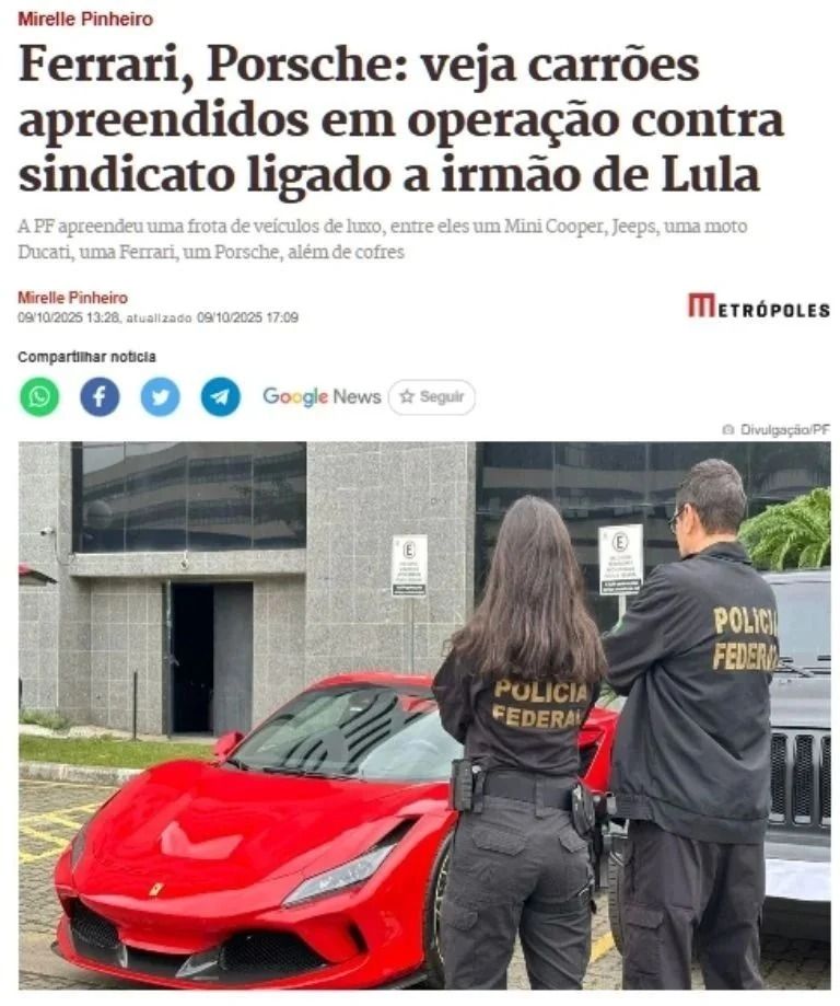Seis dias após a última tentativa de “vender um espaço” para o Sindnapi para que o Metrópoles então publicasse uma reportagem com dados falsos, atribuindo ao “sindicato do irmão do Lula” a propriedade dos carrões de luxo apreendidos pela Polícia Federal, que na verdade foram confiscados em ações contra outras entidades investigadas, essas sim envolvidas em descontos criminosos contra aposentados e pensionistas.