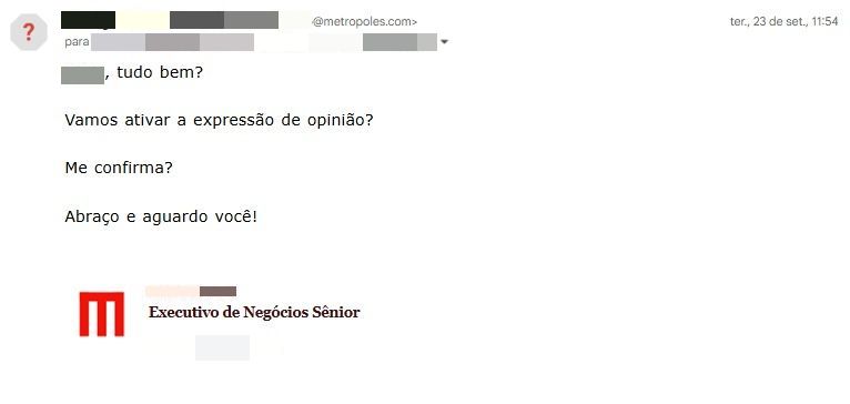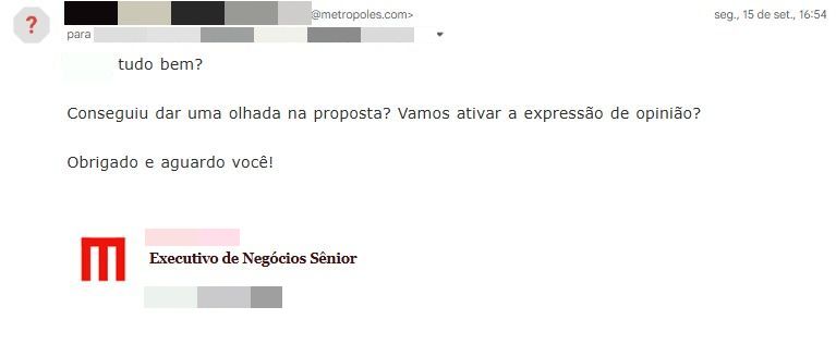 A mensagem inicial à qual Renê se refere é a que aparece abaixo, enviada e assinada por um funcionário que se identifica como “Executivo de Negócios Sênior”. Num primeiro momento, o Sindnapi pediu para ver o que seria a tal “proposta” do portal.