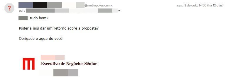Outra vez sem respostas, a empresa insiste, desta vez já no dia 3 de outubro.