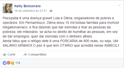 A Agência Democratize tentou entrar em contato com Kelly Bolsonaro mas até o momento não recebeu resposta.
