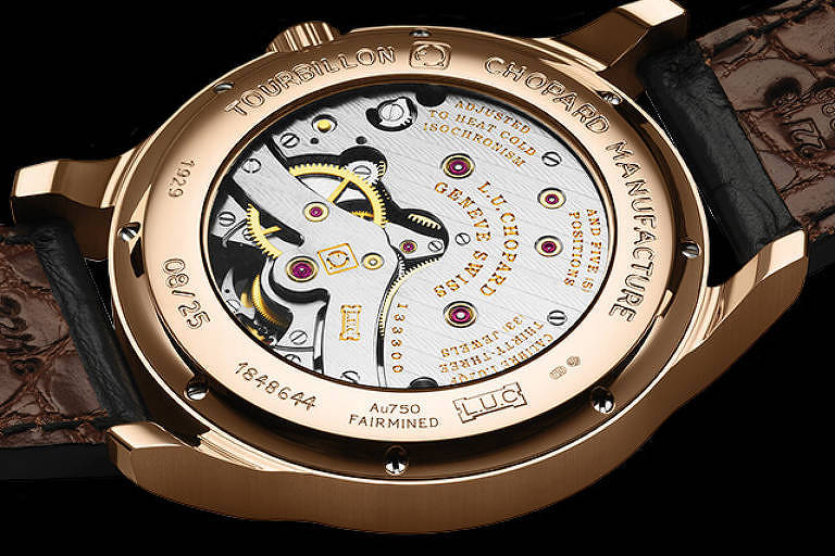 Com apenas 25 unidades produzidas, o Chopard L.U.C Tourbillon Qualité Fleurier foi apresentado em 2014 e tem caixa moldada em ouro de origem controlada.