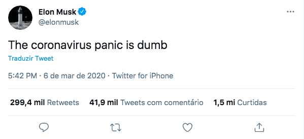 Em março de 2020, escreveu no Twitter que “o pânico com o coronavírus é burro”. Classificou lockdowns de “fascistas”.