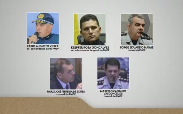 Os cinco policiais foram condenados pelos crimes de abolição violenta do Estado Democrático de Direito, golpe de Estado, dano ao patrimônio público e violação de dever funcional ligado à manutenção da ordem. A pena fixada foi de 16 anos de prisão para cada um, além de 100 dias-multa.