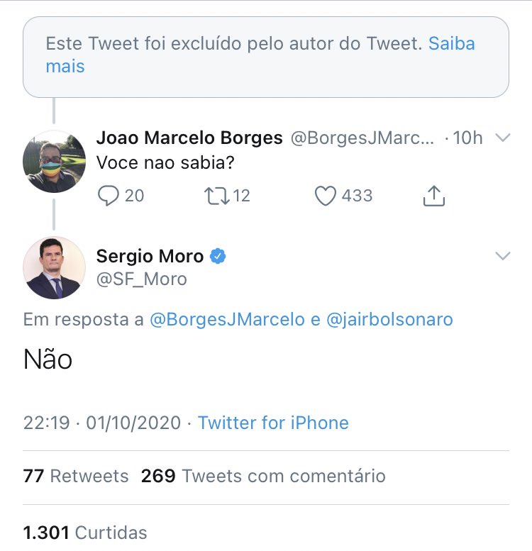 O tuíte sobre Kassio Nunes antes de Moro apagá-lo