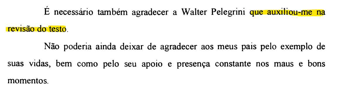 Em sua tese de doutorado, disponível na biblioteca da Universidade Federal do Paraná, Sergio Moro exibiu seus conhecimentos do idioma. Em um trecho de agradecimento, ele agradeceu a um colega pela “revisão do testo”, em vez de “texto”.