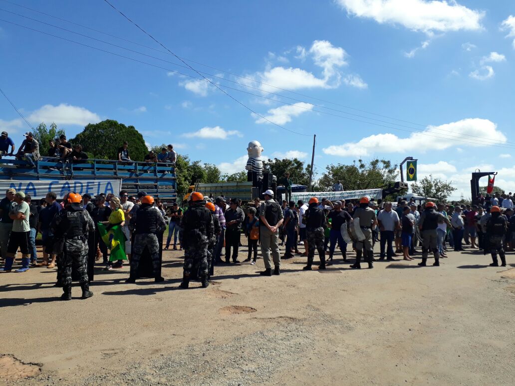 Do lado de fora, ruralistas com camiseta de Jair Bolsonaro gritava palavras de ordem contra Lula. Alguns tentaram invadir o instituto, mas foram barrados pela Brigada Militar.